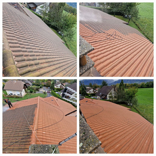 Nettoyage toiture en tuiles Chantier réalisé à Cornier 74800.