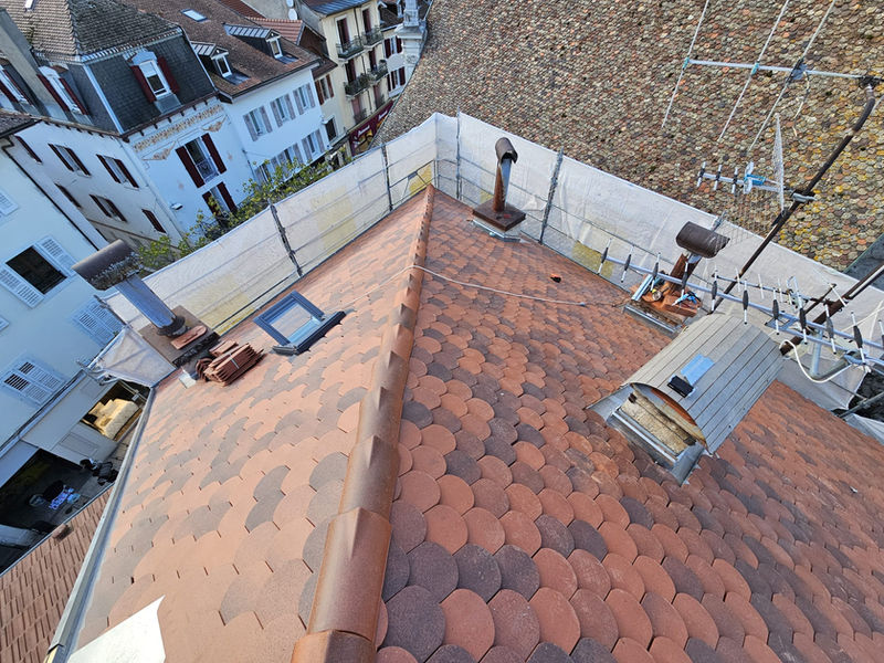 Le chantier, situé en plein centre-ville de Thonon-les-Bains, juste en face de l'église, a été mené avec précision et professionnalisme pour offrir à nos clients une toiture de qualité et conforme aux normes.